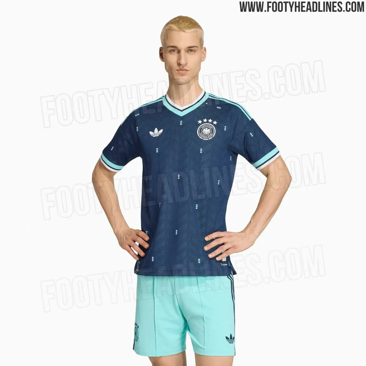 虎扑03月05日讯 据知名足球装备媒体Footy Headlines消息,德国国家队2026世界杯客场球衣官方定妆照正式曝光,球衣发布日期确定为3月20日。
